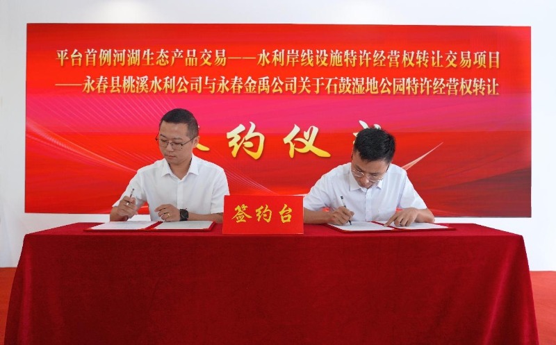 当天,平台首例河湖生态产物买卖项目成功签约落地。永春金禹水利无限公司以1200万元竞得永春县桃溪水利扶植成长无限义务公司所属石鼓湿地公园的水利岸线年利用运营权,后续将进行休闲旅逛、露营、研学科普等生态文旅项目标开辟运营。买卖中明白了权属鸿沟、特许运营内容及收益分派等环节事项,不只为市场从体合规开辟操纵供给轨制保障,也为后续河湖生态产物买卖供给了可参考的案例范本。
