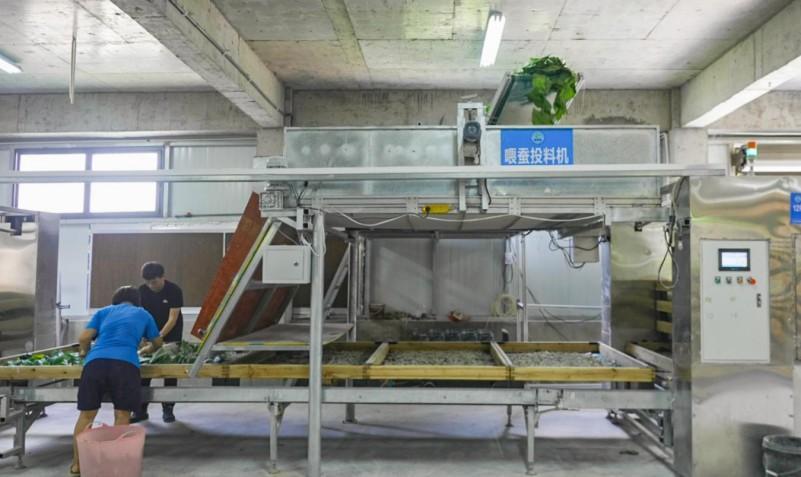 蚕匾随传送带匀速挪动,桑叶从上方经滚刷平均洒落……8月28日,记者走进这座科技感十脚的聪慧大蚕棚,映入眼皮的是成排划一陈列的智能化养蚕架,室内从动补湿器、通风系同一应俱全,搭载的“蚕房管家”系统,可从动调理棚内温度、湿度、通风等参数,为蚕宝宝营制出一个“恒温恒湿恒氧”的舒服发展。