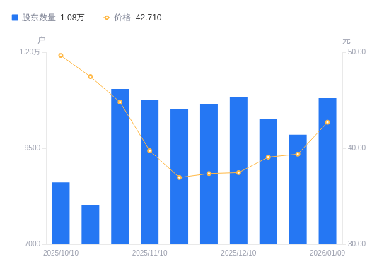 近一年(2025年1月10日至2026年1月9日),信邦智能A股股东户数从1。1万户,降幅2。08%,区间股价上涨91。52%。