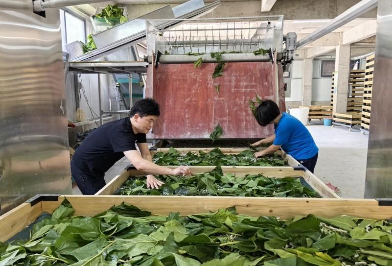到了喂养时间,棚内全然不见蚕农穿越其间投喂,取而代之的是一台有序运转的投料机。工做人员只需将桑叶放置到进料口,启动按钮,蚕匾便会随传送带有序挪动,桑叶则通过另一条传送带输送至蚕匾上方,经滚刷平均铺撒,5小我不到1小时便完成了15张4龄大蚕的饲喂工做,全程流利高效,还能精准把控投料量,让每只蚕宝宝都能“吃饱吃好”。“以前正在家养2张蚕,两小我从早忙到黑,现正在5小我盯着设备,悄悄松松就能喂15张。”蚕棚担任人严增彬引见说,保守养蚕不只劳动强度大,人工操做差别影响,蚕茧产量和质量常不不变。现在,这座聪慧化养蚕大棚配备了从动喂料机、上蔟架、摘茧机等设备,上蔟办理到摘茧,实现了全程机械化、从动化,哪怕养50张蚕,几小我也能轻松搞定。棚内温度、湿度从动调控,蚕病少了,结的茧又大又白,产量和质量实现了双提拔。
